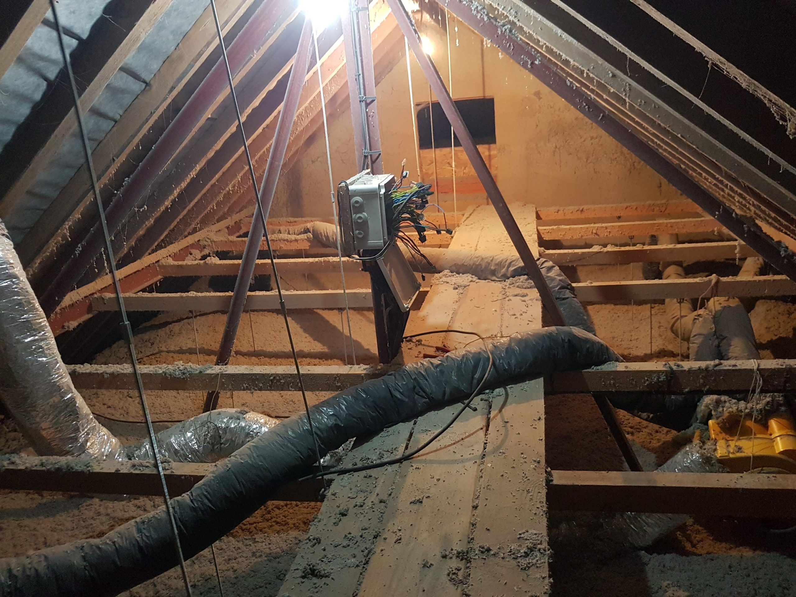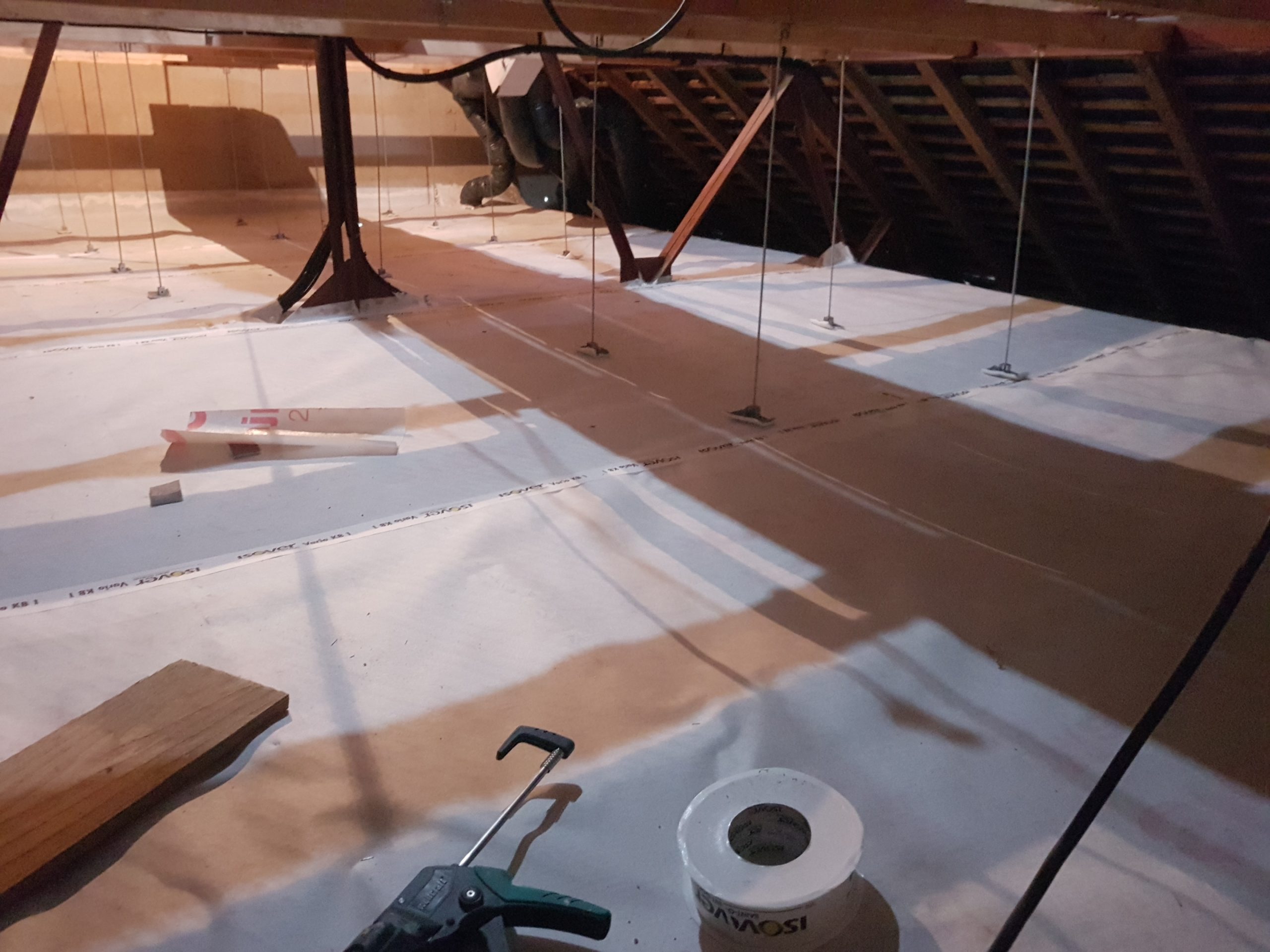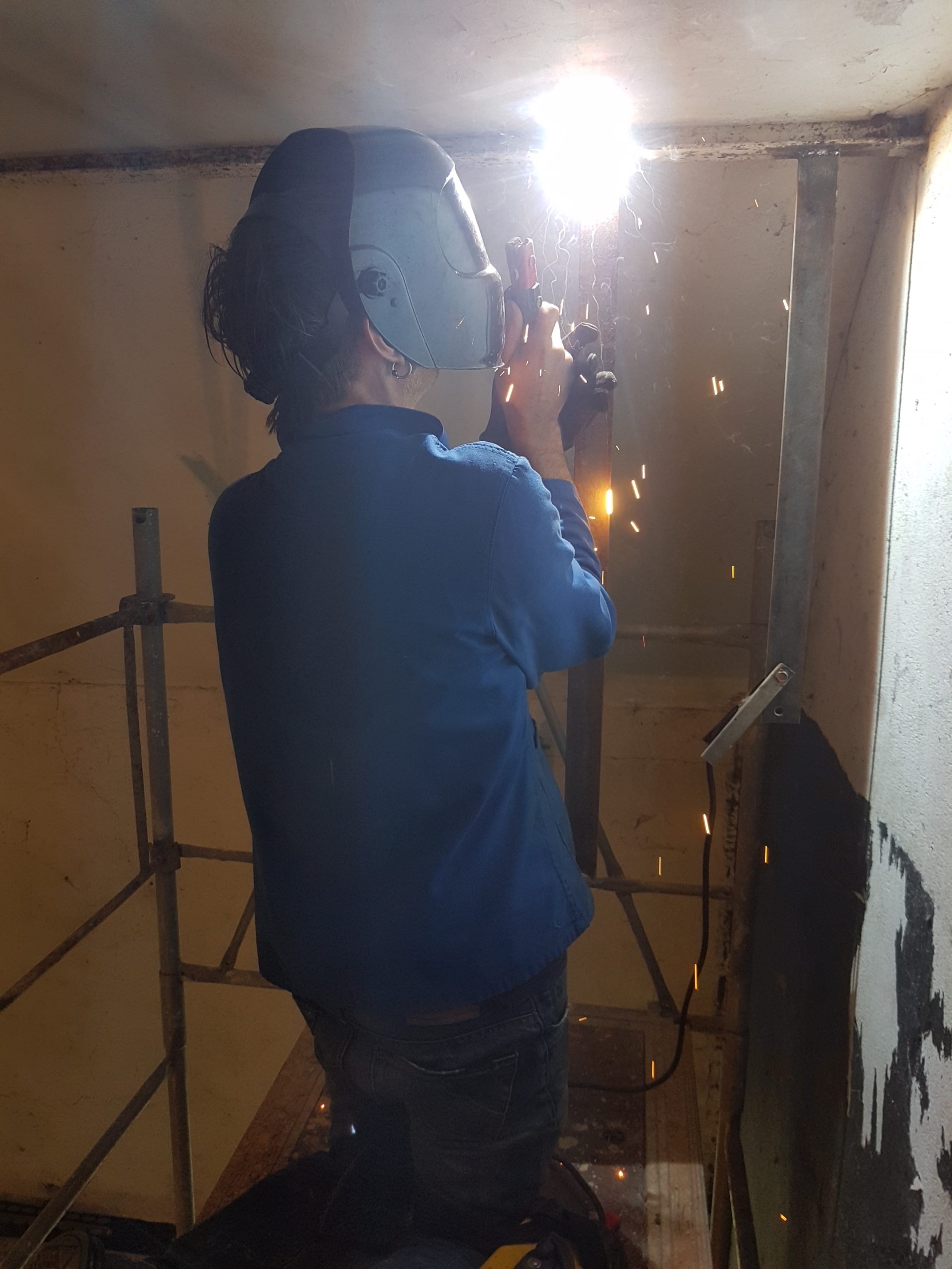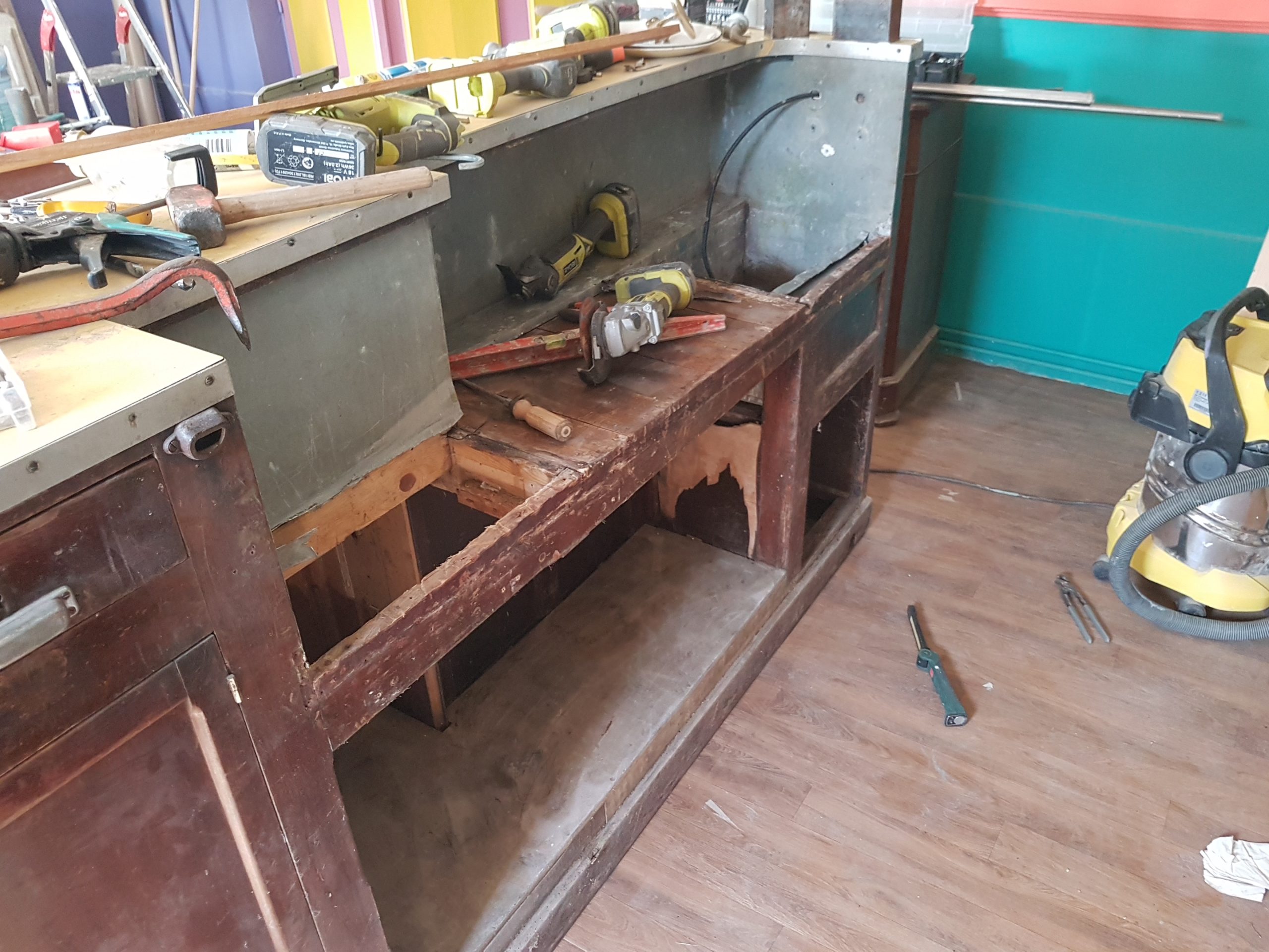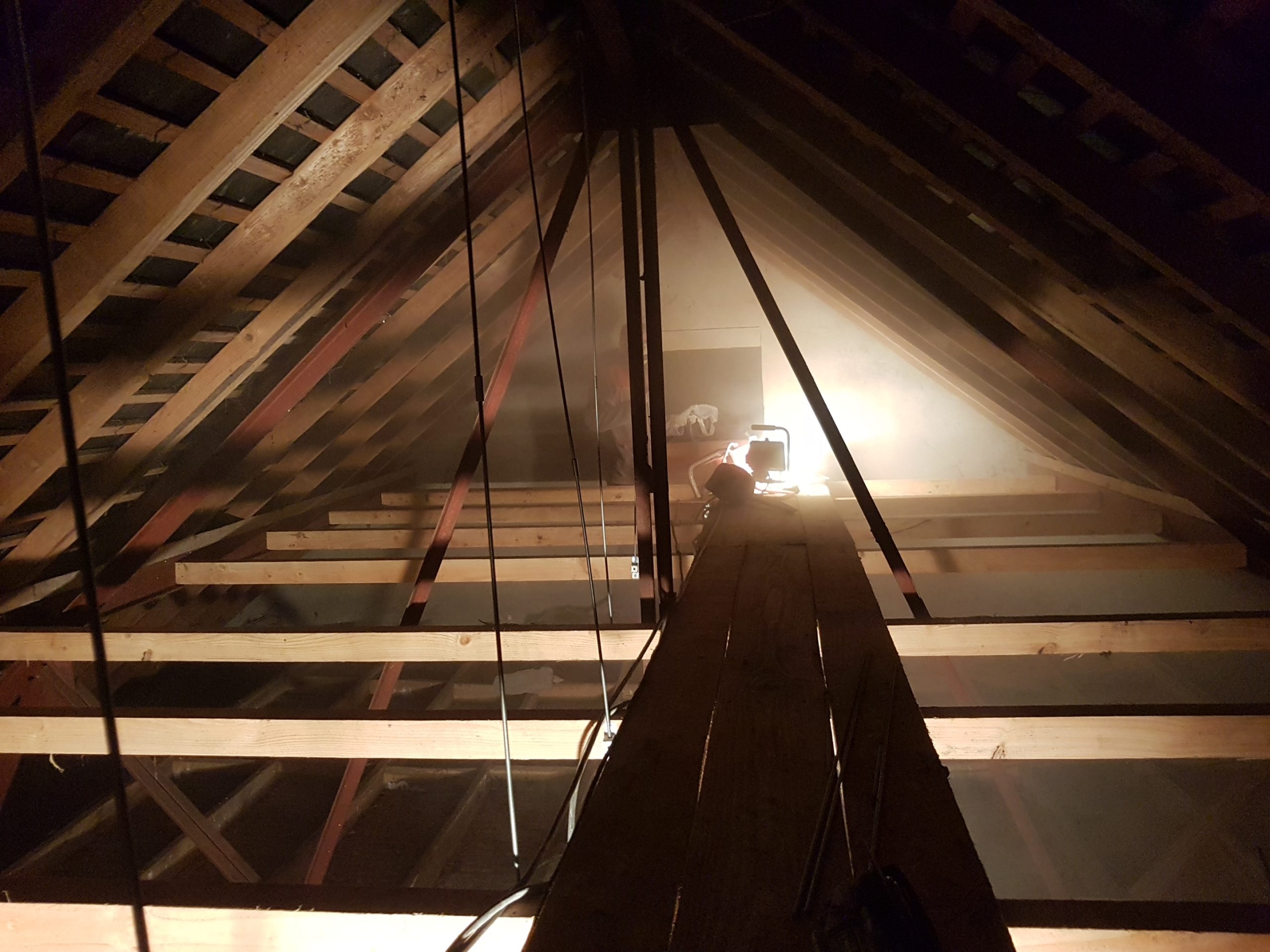 C’est en novembre 2022 qu’ont commencé les travaux de réfection. Il a fallu déposer un permis de chantier, faire tous les plans du lieu, les projections, isoler intégralement le bâtiment (combles, bardage, nouvelles fenêtres, système de chauffage…) et refaire la toiture en ardoise. Pour en faire un ERP (Etablissement Recevant du Public) nous avons du nous mettre aux norme d’accessibilités et de sécurité et donc : créer une extension pour faire des toilettes accessible personnes mobilité réduite, créer les issues de secours, mettre à niveau les planchers… Et aussi refaire tout le système électrique, les murs, les plafonds, la création d’espaces de rangements, mezzanine, création de la cuisine complète, restauration de la scène etc. etc. Nous avons travaillé dur et en avril 2024 nous avions enfin fini !