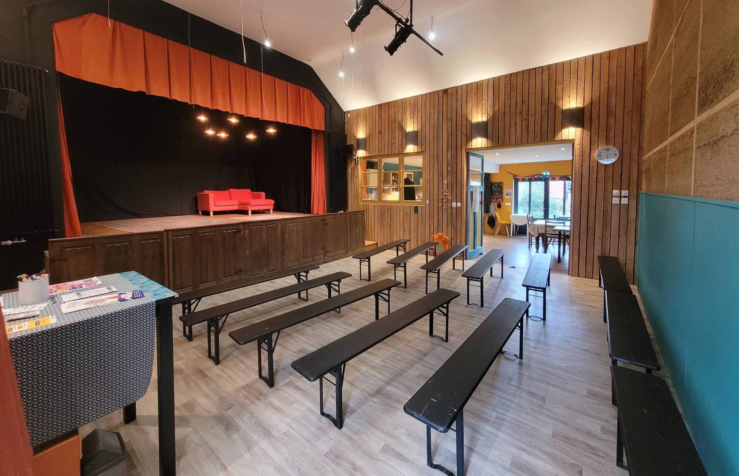 Le Petit Grain est un ancien théâtre qui a été complètement rénové et mis aux normes ERP (établissement recevant du public) en 2023 par ses propriétaires Claudia et Clément.
