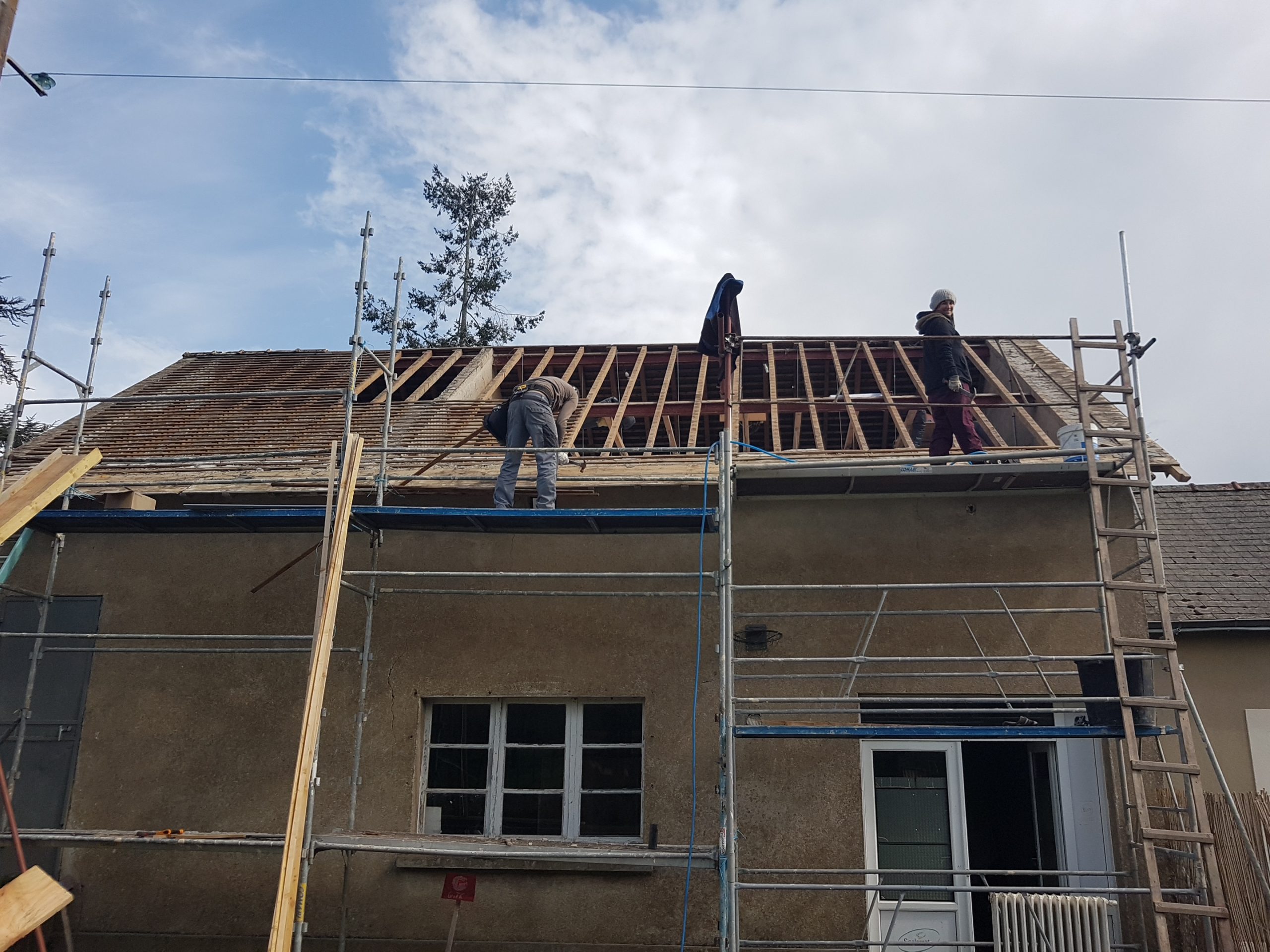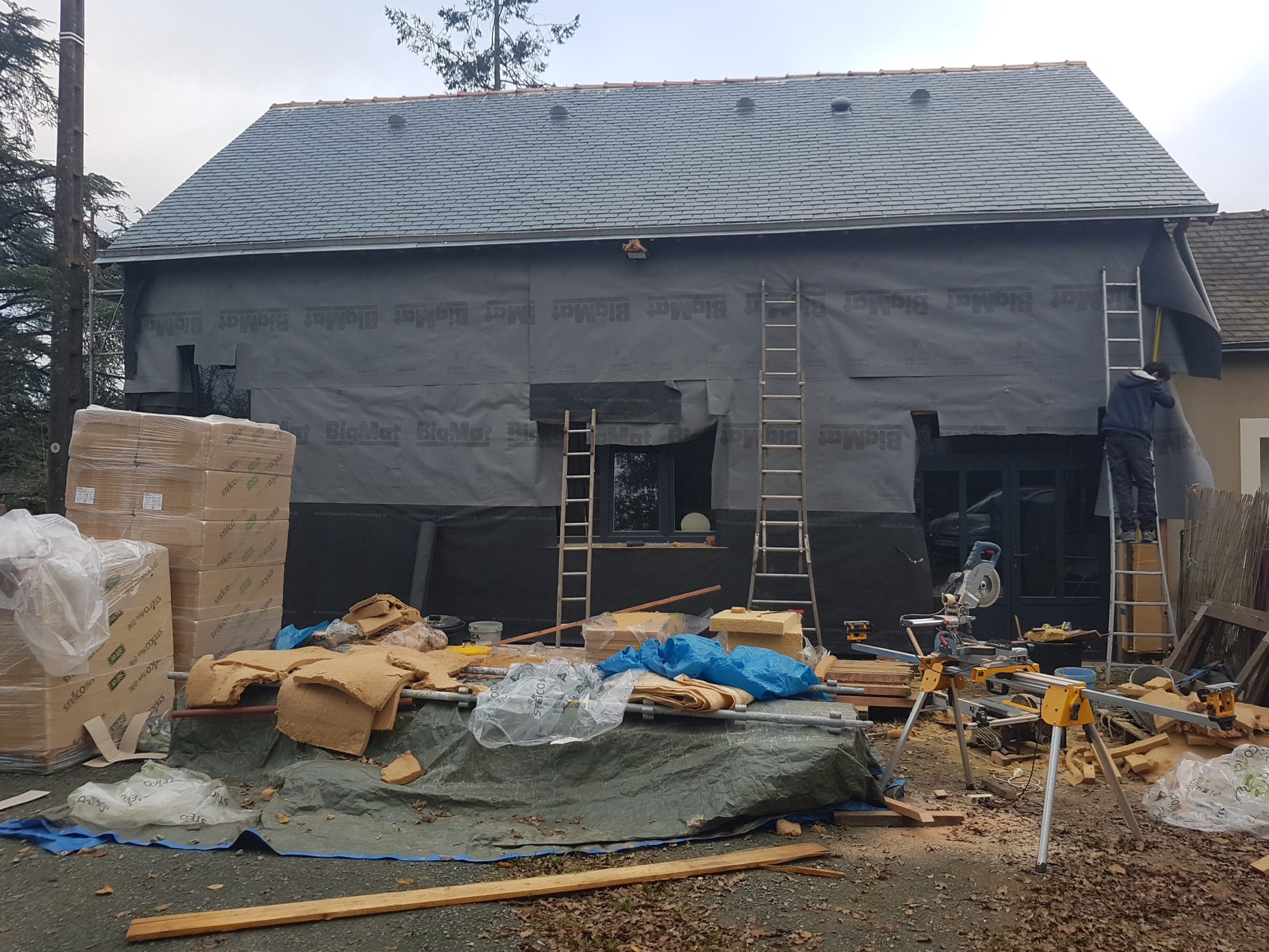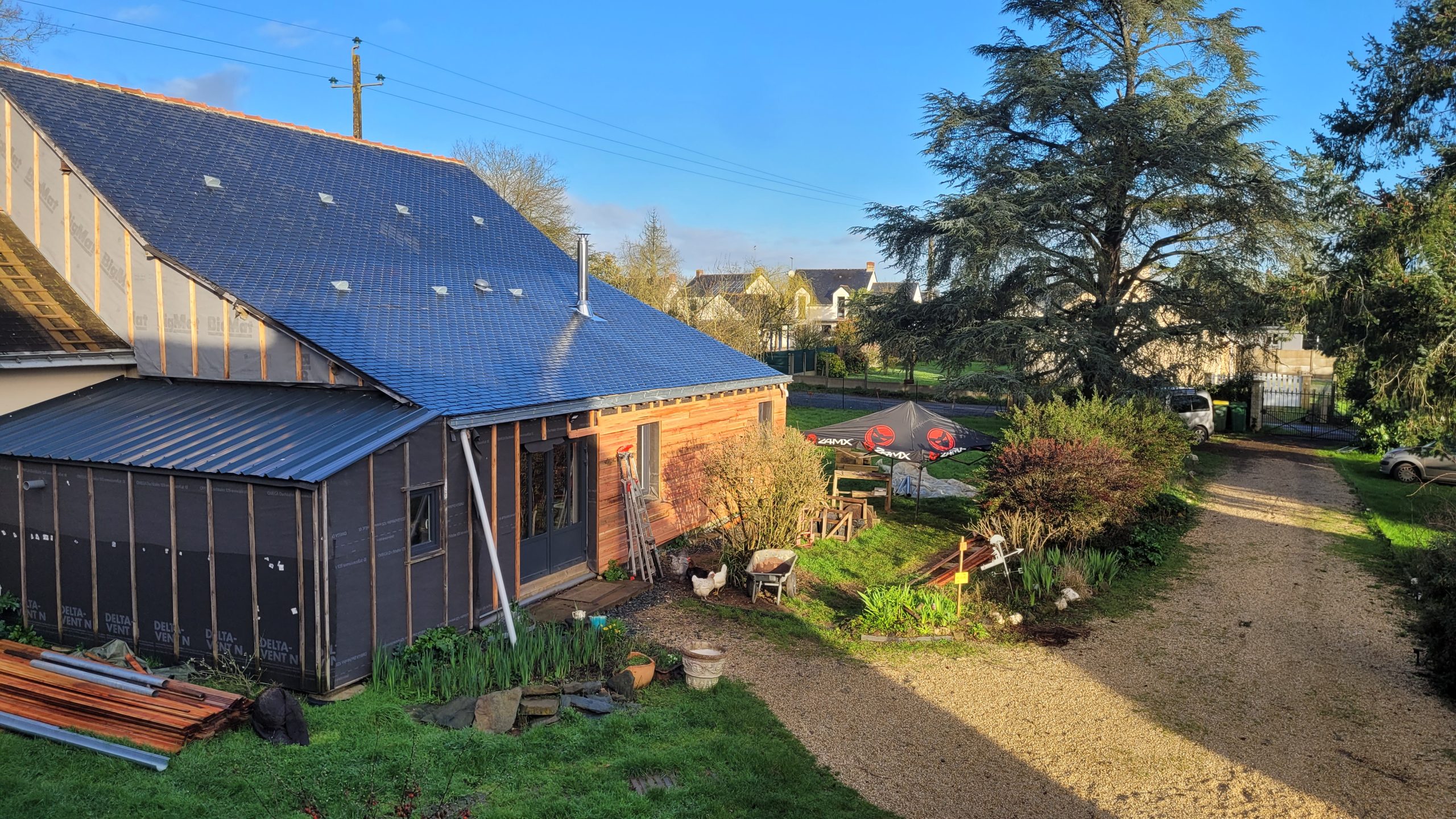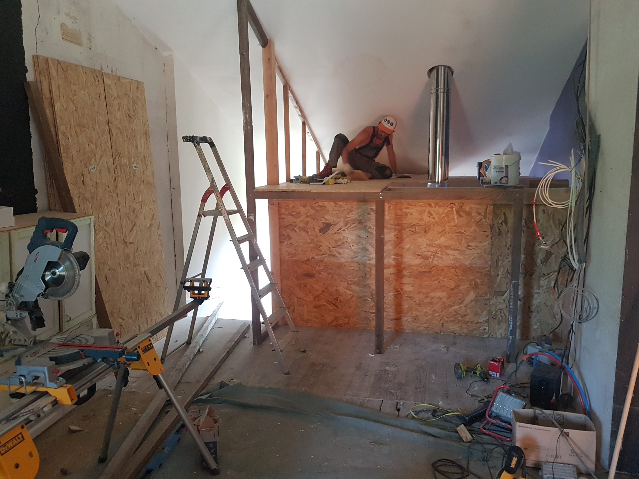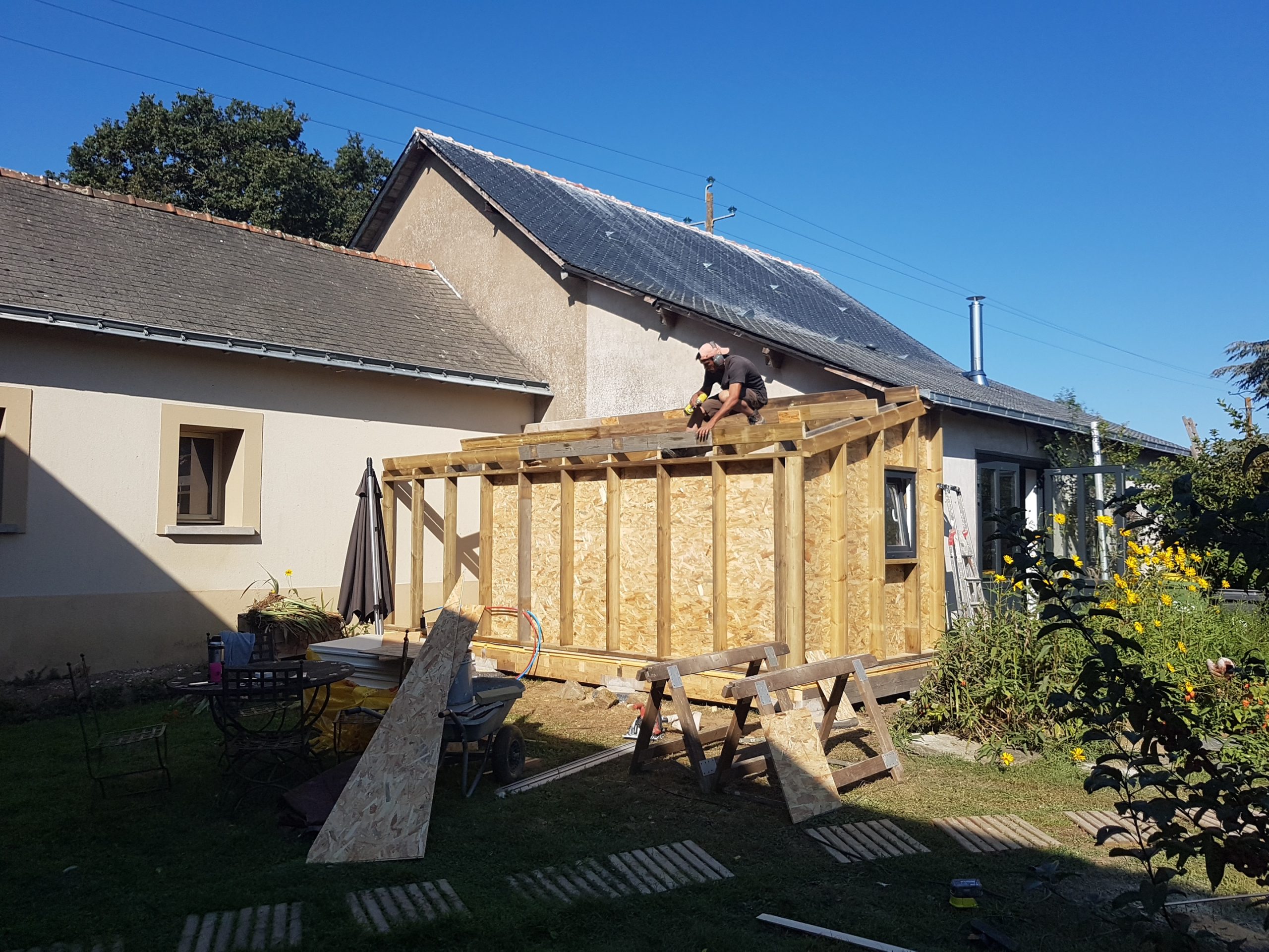 Pas beaucoup de moyen donc on a dû compter sur la débrouille, l’entraide, les récupérations en tout genres, les copains de copains, la famille, les chantiers participatifs… avec toujours une idée globale de faire le plus écologique possible.